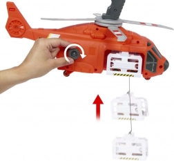The Matchbox Action Drivers Helicopter measures over 40.5 cm and offers real rescue action experiences. Launch into action, press the lever on the handle to activate the rotor, and head to the scene. Once you arrive, lower the winch to pick up a 1:64 scale metal vehicle. After landing, transform the helicopter into a rescue station with activated GPS.