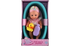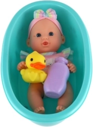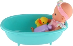 A cute baby doll in a little bathtub with a duck will delight every young bath-time fan. The set includes practical accessories for pretend bathing and care. A strong plastic body, a bathtub with a duck, and easy maintenance make this set a great gift for children ages 3 and up.