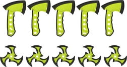 target, 5× shuriken, 5× axe, stand