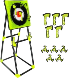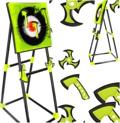 Discover action-packed target fun inspired by the ninja world – with silicone axes and shuriken, kids can safely practice aiming and concentration. The sturdy free-standing frame with stand allows quick setup and convenient storage of accessories.