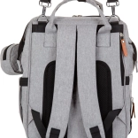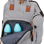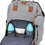 This stylish grey diaper backpack combines modern design with maximum functionality. Thanks to the many pockets, including three internal insulated bottle pockets, you’ll quickly find everything you need—from diapers to snacks. Easily attach it to a stroller handle, and enjoy comfortable wear on your back with the padded straps.