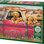 Enjoy a relaxing time assembling a beautifully illustrated puzzle featuring a countryside scene with adorable puppies in a rusty pickup. This 1000-piece puzzle from COBBLE HILL offers an original irregular die cut that boosts both fun and challenge. The box also includes a full-size poster to make assembly easier.