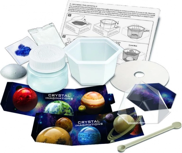 The kit allows for hands-on exploration of science as children grow their own crystals. Promotes creativity and knowledge of chemical science.