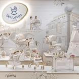 The charming REBORN Verona 2024 doll stroller in a light beige and white combination with delicate polka dots and stripes stands out with precise Spanish craftsmanship and a timeless design. Thanks to the height-adjustable handle (65–90 cm), it perfectly adapts to the child’s growth and is easy to maneuver.