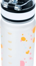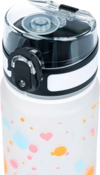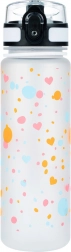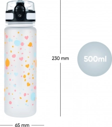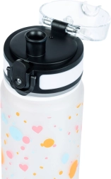 A stylish 500 ml Tritan bottle with a heart motif, ideal for school, sports, and trips. Features a leakproof lockable lid, a practical carry strap, and an inner strainer for fruit or tea. Made from safe BPA-free Tritan, odorless and suitable for hot drinks as well.