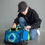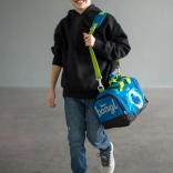 A lightweight and practical children's sports bag by BAAGL with a football ball motif, ideal for after-school clubs and as a carry-on. It features a spacious main compartment with a wide lid, a separate shoe pocket, a detachable adjustable strap, and a reinforced water-resistant bottom. For children's safety, it includes reflective elements and reliable YKK zippers.