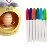 - Complete kit – 3 eggs, 8 markers, and a bunny stand ready for crafting.