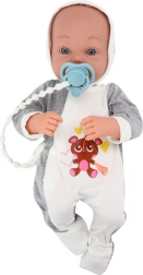 The set also includes a blue pacifier on a knitted cord and a soft blanket for even more caregiving joy. Playing with the doll expands children's imagination and teaches them how to take care of a baby, stimulating their social development.