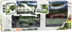 RC farm combine with green trailer cart