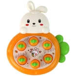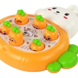 Animated bunny graphics create a playful mood. The set includes a special board with six carrots. Carrots pop up from random holes on the board, making the game more exciting and unpredictable.
