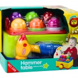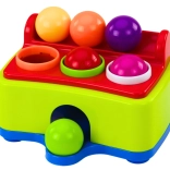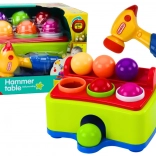 The interactive ball-pounding table is an ideal toy for preschoolers. Six colorful plastic balls are placed in the top openings and kids use the hammer to pound them inside. The balls then roll out through the front tunnel, creating surprise and encouraging repeat play.