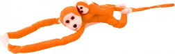 The plush monkey with orange fur is designed to be a soft and comforting companion for children.