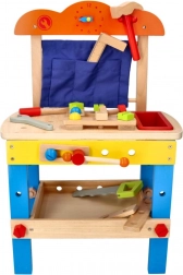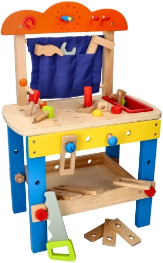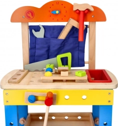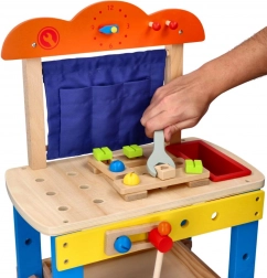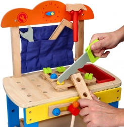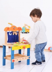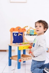 Discover a fun and safe playset for children aged 3+: a wooden workshop with a rich set of tools that supports creative play, fine motor skills, and hand–eye coordination. The stable wooden construction, vibrant colors, and plenty of accessories inspire role play and learning the basics of “DIY”.
