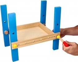 - Wooden workshop + tool set (hammer, saw, screwdriver, wrench, screws, nuts, gears, and other pieces)