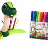 The compact size of the projector, 36 cm x 33 cm x 9 cm, makes it easy to store. The set includes a practical organizer in a leaf shape to store all parts, ensuring no more lost components. The included three discs with animal images turn drawing into a British educational lesson, while the complete drawing kit featuring 12 colored markers and a notepad encourages kids to create their own artworks.