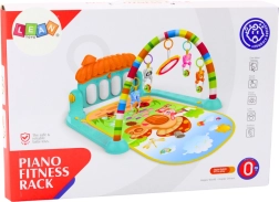 Colorful and soft mat offers comfort and safety during play. The child can kick the piano placed at the base of the mat, which produces cheerful sounds, or play the piano with their hands to develop their muscles and hand-eye coordination. Above the mat is an arc with toys that can be grabbed and shaken, which promotes the child's sight and touch.