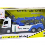 The crane truck's cabin is made of metal, which increases its durability and authentic appearance. The robustness and attention to detail are also reflected in the rubber wheels, which ensure excellent grip on surfaces. The crane truck moves forward with a light push, adding to the dynamics of play.
