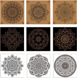 Discover the relaxing world of mandalas with this set containing 9 pictures to color. The mandalas are printed on three background colors—white, black, and beige—and adorned with a gold metallic foil for an elegant effect. Perfect for creative relaxation, color work, and interior decoration. Finished pictures can be folded and displayed on a shelf or hung on the wall.