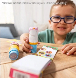 Creative set for unicorn lovers brings 200 stickers and a mini book for endless crafting at home and on the go. A universal refill compatible with all stamps from the STICKER WOW! series supports imagination and fine motor skills. A safe product with CE certification, awarded the title Toy of the Year 2024.
