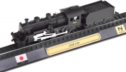 Discover a stylish collector’s piece: the JNR C50 steam locomotive in an accurate 1:160 scale reproduction. The model is set on a realistic rail base with a plaque showing the name and scale, complemented by the flag of the country of origin. The cylindrical case made of clear, thick plastic allows detailed viewing while protecting against dust and impacts.