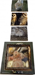 With this unique puzzle, children can explore the individual stages of an owl's development through real photographs. The layered puzzle includes four stages of the owl's developmental cycle: