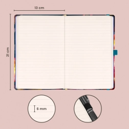 Ruled pages on yellow paper provide a pleasant contrast and comfortable readability. The compact 13 × 21 cm size fits perfectly in a handbag or backpack, yet still offers ample space for 172 pages of notes, tasks, and creative ideas.