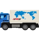 Select from four types of trucks, including a cement mixer, garbage truck, fire truck, and transport truck.