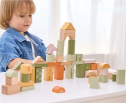 50 carefully crafted wooden blocks in soft tones with animal motifs encourage creative play and STEM basics. The smooth surface and quality craftsmanship ensure durability and safe play.