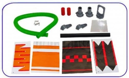 Plastic parts, foam tip, flexible hose; can use a PET bottle and paper