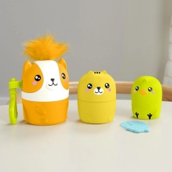 Welcome to the playful world of Fisher-Price animal building blocks, where children can care for cute characters of different sizes. The set includes three larger animals with various closures and a small hamster, which also serves as a comb. Children can comb the 'fur' of the dog, enhancing their dexterity and fine motor skills.