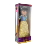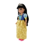Introducing a fairy-tale doll that captivates with her beauty and detailed craftsmanship. The doll is 38 cm tall and is dressed in stunning blue-yellow floral-patterned dress. She wears a silver tiara on her head that enhances her royal appearance. This doll is perfect for imaginative play, offering many possibilities for role-playing. The toy has movable limbs that allow various poses and due to its dimensions, it easily fits in little girls' hands.