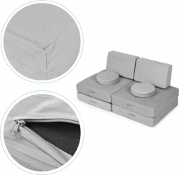 - Each cushion is also equipped with a practical zipper. This allows you to easily remove the cushion covers and wash them in the washing machine, keeping the chair in perfect condition for a long time. This solution ensures not only convenience but also easy cleanliness maintenance, which is especially important with intensive use by children.