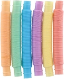 This colorful set of 6 plastic tubes offers endless play possibilities — from simple stretching and compressing to creating original constructions. Thanks to their flexible accordion design, the tubes make amusing sounds as they move, supporting sensory input and concentration.
