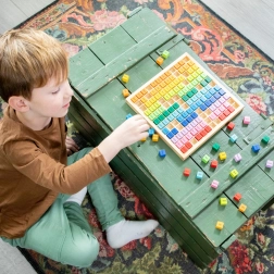 This wooden multiplication table is a great tool for developing logical thinking and fine motor skills. Colorful blocks with problems motivate children to explore and learn through play, while instant answer checking supports independence and confidence.