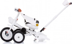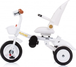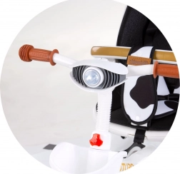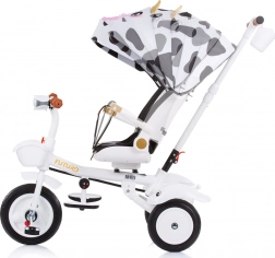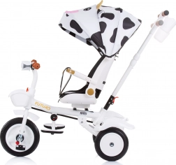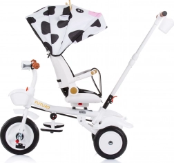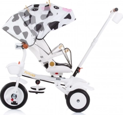 The CHIPOLINO Futuro 2-in-1 Cow tricycle with canopy combines comfort, safety, and fun. With the option of parent pushing or independent pedaling, it accompanies children from their first rides to confident exploring. Soft padding, safety harness, and a protective bumper bar provide comfort and reassurance in every situation.