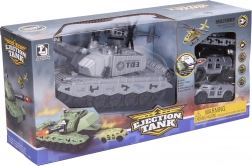 An action-packed kids' set that's fun right out of the box: a 21 cm friction-powered shooting tank with a car-launch garage, 8 darts, 3 military cars, and a helicopter. Simple mechanical operation with no batteries and plenty of ways to play.