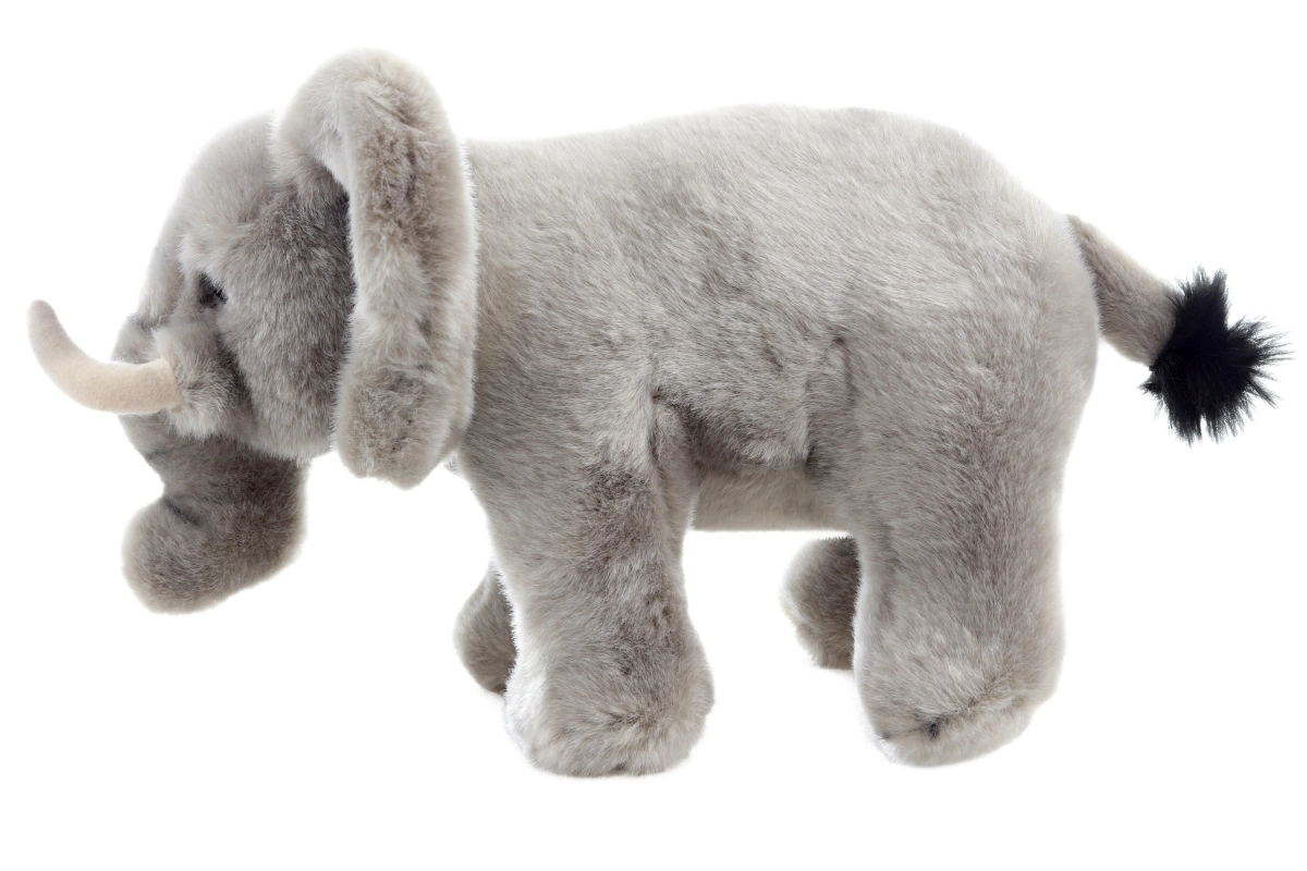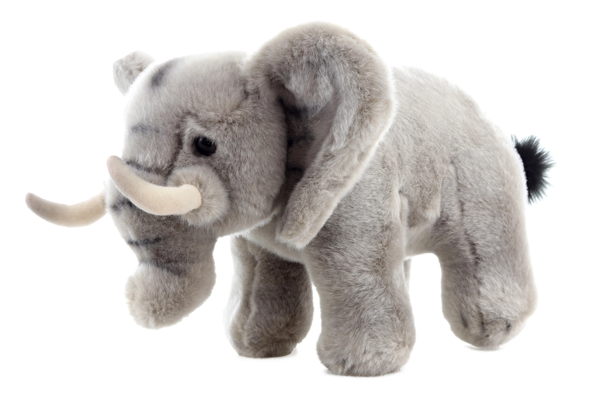 The elephant is designed with attention to detail, including realistic ears and tusks. This detailed appearance makes it a favorite among young children.