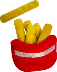 This adorable plush fast-food set brings a big portion of fun to any play kitchen. In the practical basket you’ll find a hamburger, fries, pizza, chicken drumstick, fried egg, muffin, and ice cream. Each piece is soft, comfortable to hold, and looks attractive and realistic thanks to embroidered details.
