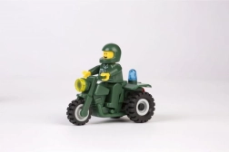The cars in the set include a military cannon, a terrain vehicle, and a motorbike, enhancing play possibilities and allowing children to create various battle scenarios.