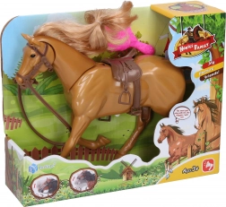 A cute 26 cm toy horse will delight every little horse lover. It offers sound effects when the head is tilted forward, includes a comb for grooming the mane, and batteries are included. Available in two color variants – dark brown and light brown.