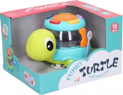 Discover a playful turtle-shaped drum that captivates kids with its cheerful design and interactive effects. Thanks to its light and sound functions, it encourages play, supports rhythmic sense, and develops fine motor skills. The practical ON/OFF button allows easy control, and the turtle features free-rolling wheels for smooth movement across the floor.