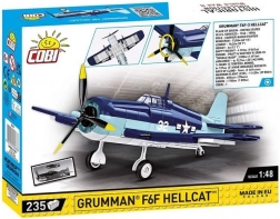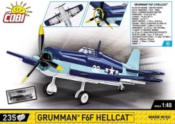Build the legendary carrier-based fighter GRUMMAN F6F HELLCAT in 1:48 scale from 235 quality pieces. The model features authentic US Navy naval colors, a spinning propeller, and a removable landing gear. Bricks are made in the EU, fully compatible with other brands, and decorated with durable prints without stickers.