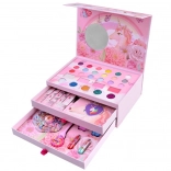Give your daughter the opportunity to express her creativity with this unicorn make-up suitcase. It contains everything needed to create beautiful makeup while keeping mom's cosmetics safe.