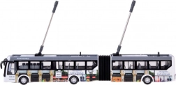 The detailed trolleybus with an articulated joint and functional current collectors on the roof gives the model an authentic look. Ideal for play and as a collector’s piece.