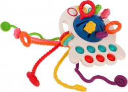 | Children’s toy for kids. . | 4-in-1 sensory toy, octopus for children from 18 months. The toy is made of child-safe materials and has no sharp edges. Vivid colors encourage the child to play. The toy can be used as a teether; a toddler can pull, push, move various elements, and practice hand-eye coordination. The toy can be attached to a crib, stroller, or car seat when traveling by car. . Toy features: . - suitable for children from 18 months, .- made of safe materials, .- bright colors attract toddlers’ attention, .- lots of play options: .* rubber strings for pulling and chewing, .* pop it - pressing and squeezing bubbles, .* move the button through the slaloms, .* bead splitter, .- option to fasten the toy in various places: crib, stroller, etc. .- easy to clean. . |
