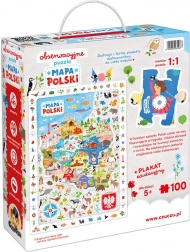 - 100 pieces that form a detailed map of Poland when assembled.