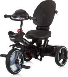 Growing tricycle for little explorers: Chipolino Be Active 2-in-1 Jungle offers two riding modes (parent pushes / child pedals independently), a 360° rotating seat, rubber wheels, and a rich safety package including harness, bumper bar, and brakes. The practical folding canopy with sunshade and storage baskets ensure comfort on every outing.