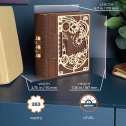 Discover an elegant way to hide your small treasures: the wooden mechanical Book of Secrets from UGEARS turns into a functional cache with a three-digit code and impressive gears after assembly. Made from sustainably sourced wood, it offers a medium difficulty build, no glue required, and up to 12 hours of fun assembly—ideal as an original gift and a stylish shelf decoration.