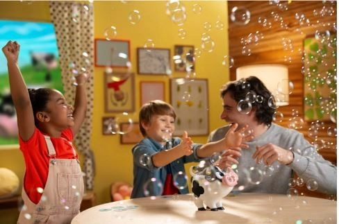 When you press her head, she may blow a few or a lot of bubbles from her nose, but what then... Oh no, the cow baked a pie!