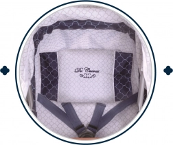 Includes a quilted cover, soft pillow, practical lower basket, and a decorative backpack in a matching design—everything for maximum comfort during play.